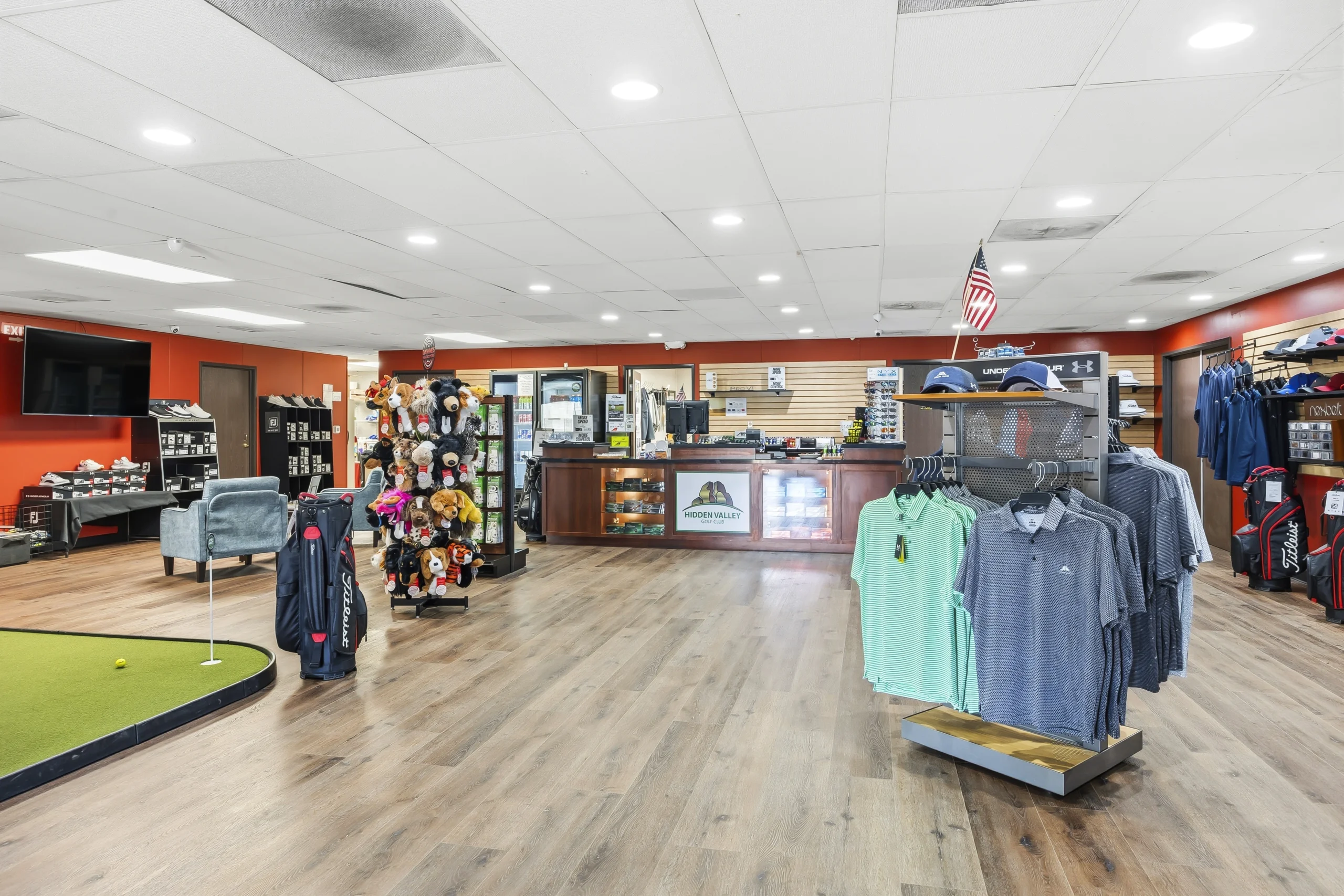 The Pro Shop at Hidden Valley Golf Club is where many of our guests first experience the hospitality and quality service of our staff. Stocked with a complete selection of the most popular golf apparel and equipment available, our pro shop is designed with convenience in mind. Get everything you need for a great round of golf, or pick-up fabulous gifts any golfer will enjoy. Our friendly staff is happy to assist you with your selections.